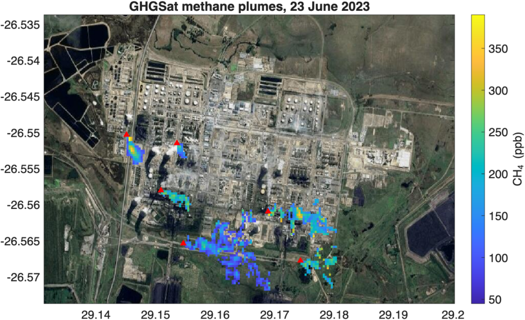 Reference: Henrik Virta, Janne Hakkarainen, Iolanda Ialongo, Johanna Tamminen, Marianne Girard, Berend J. Schuit, and Joannes D. Maasakkers: Monitoring Persistent Methane Emissions from the Secunda CTL Synthetic Fuel Plant using Satellite Observations, Environmental Science & Technology Letters, doi: https://doi.org/10.1021/acs.estlett.5c01140, 2026.